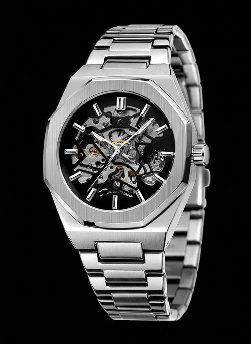 Mechanical watches with nothing to hide. Exposed movement. Brushed steel. Geometry that holds attention.